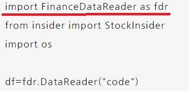 이 stockinsider의 경우에는 위 스크린샷에서 밑줄을 쳐 놓은 FinanceDataReader에서 가지고 와야 하는데, 이게 문제라면 심각한 문제이기는 합니다. 우선 얘네가 어떤 형식으로 가지고 오는지를 보고, 그 형식에 맞추어서 어떻게 csv파일에 넣은 뒤 이를 stockinsider가 읽어야 하는 복잡한 과정이 남아 있습니다.