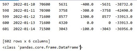 그리고 다행이라면 다행인 것이 OBV를 계산한 결과가 판다스의 데이터 프레임이기 때문에, 어떻게 작업이 가능할 것으로 생각이 됩니다. 다만, 아직 완성이 된 것이 아니라 아직 가야할 길이 멀다면 먼데, 일단 이번 포스팅은 여기까지 다루도록 하겠습니다. 나머지 내용은 part2에서 이어서 다루어 질 예정입니다.
