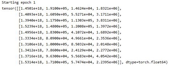 우선 데이터를 모두 텐서 형식으로 바꾸어 보았는데, 이렇게 바꾸고 나서 보니까, 일단 데이터의 형식은 제대로 사용할 수 있는 형식으로 바뀐 것을 확인할 수 있기는 있었습니다. 다만, 이 스크린샷을 찍은 시점까지도 기계학습은 제대로 돌아가지 않았습니다.