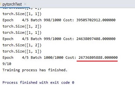 이렇게 해서 나온 기계학습의 결과를 보면, 무언가 오차가 많이 줄어들어야 할 cost의 값이 너무 큰 것을 확인할 수 있는데, 이것도 이것대로 무언가 좋지 않은 상황입니다만, 그래도 일단 이 상태로 어거지로 기계학습이 되기는 되었습니다.
