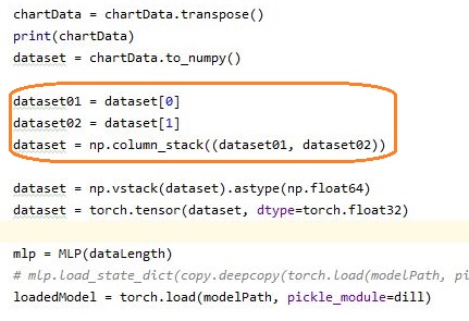 여기서도 역시나 데이터 셋을 지정해 주도록 합니다. 일단 volume과 obv값을 가지고서 어떻게 다음의 close값을 예측하기 위한 작업을 하는 것인데....................