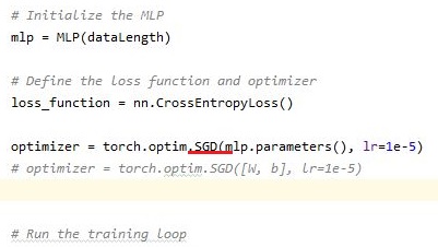 우선 어디가 차이가 났는지 궁금해서 먼저 적용할 것ㄷ은 optim이라고 해서 최적화를 해주는 메서드를 SGD로 바꾸어 주도록 했습니다.