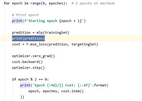 그래서 이번에는 예측결과인 prediction이 과연 어떻게 나오길래 이런 결과만이 나오는지 알아보기 위해서 한번 print함수를 써서 알아보기로 했습니다.