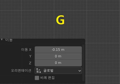 그리고 나서 다음으로 진행해야 할 것으로는 위 스크린샷에서 볼 수 있는 것처럼 G키를 눌러서 이동을 시키도록 하고, 상당히 적은 공간만 움직이게 해 줍니다.