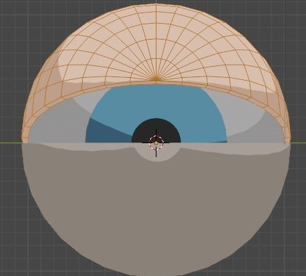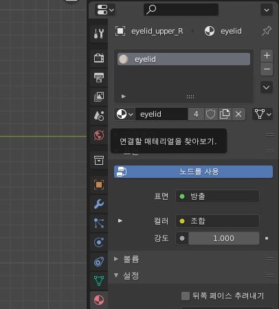 다음으로 해야 할 것은 아랫꺼풀인데, 여시 여기서도 오브젝트 모드에서 아랫꺼풀을 선택한 다음에, 다시 돌아와서 R키와 엔터키를 이용, 메뉴를 불러오는 것으로 어떻게 작업을 이어가야 합니다.