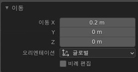 마지막으로 G키를 눌러서 이동까지 완료를 해 주도록 합니다. 이렇게 하는 것으로 일단은 하나하나 작업이 완료가 되기는 되었습니다.