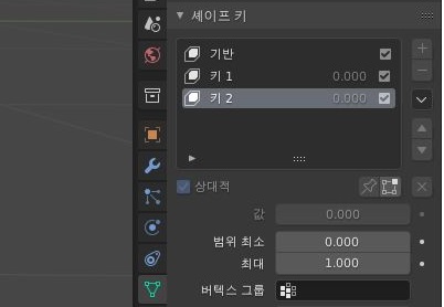그리고 셰이프키에서는 2번째로 다른 키를 추가로 만들어 주어야 합니다. 이렇게 하는 것으로 어떻게 다른 모양을 할 수 있도록 만들어 줍니다.