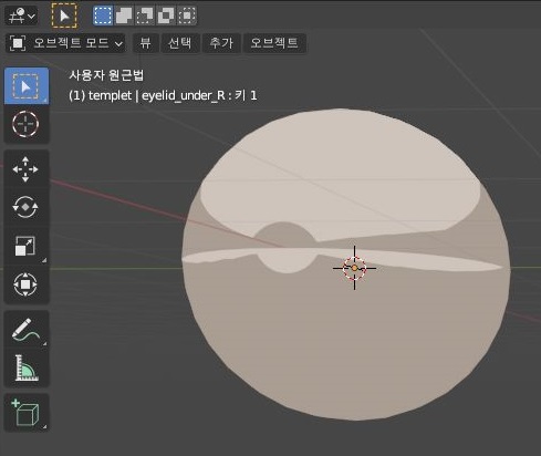 일단 오브젝트 모드에서 눈을 닫은 상태로, 이제 다음으로 다른 형태의 눈 모양을 할 수 있도록 만들어 보기는 봐야 합니다.