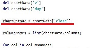 일단 close의 데이터를 가져오기 위해서, 새로운 변수를 만들어서 기존의 chartData에서 이 부분만 가지고 오도록 시도를 해 보도록 합니다.