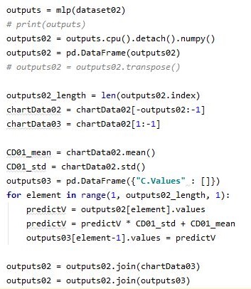 그리고 나서 다음으로는 새로운 DataFrame을 만든 다음에, 여기다가 역산으로 normalized된 예측값을 실제 주가로 변환하는 과정을 거치도록 합니다.