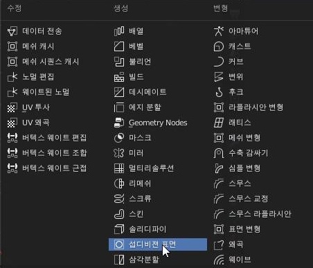 그리고 나서 이제 모디파이어를 추가해 주는데, 여기서 추가할 모디파이어는 섭디비젼 표면이라고 해서, 기존의 섭디비젼과는 비교가 되지 않을 무언가를 만들어 준다고 합니다.