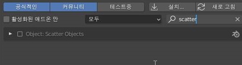 그리고 나서 이제 애드온 2개를 추가해 주어야 하는데, 먼저 추가해 주어야 할 것은 위 스크린샷에서 검색을 scatter로 쳐서, 나온 결과물을 추가해 주도록 합니다.