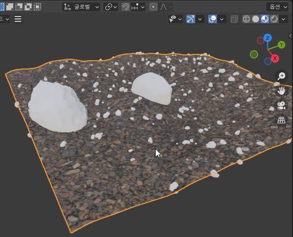 그리고 나서 위에 놓은 돌들이 아직 텍스쳐가 입혀지지 않았는데, 이 것도 어떻게 작업을 해 주어야 겠다는 생각이 들었습니다. 그래서 작업을 시작합니다.