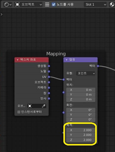 그리고 나서 이미지의 흙 알갱이가 너무 크다는 감이 있어서 위 스크린샷에서 보이는 것처럼, 일단은 하나하나 2배로 축적을 키워 주도록 했습니다.