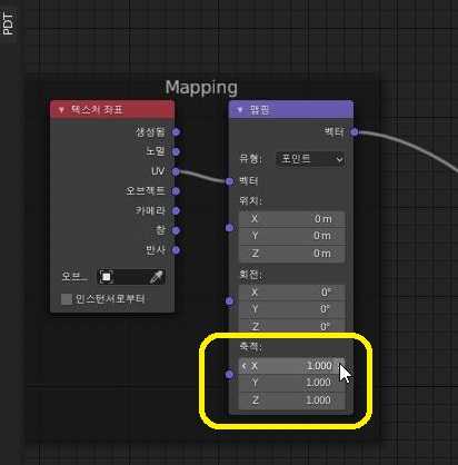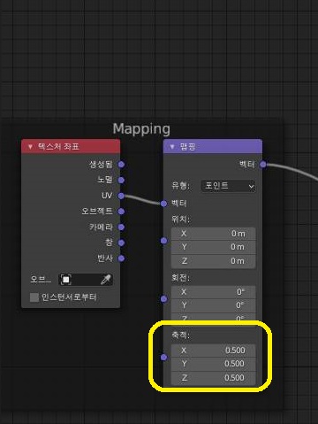 먼저 이 구름 텍스쳐의 크기를 위 스크린샷에서 볼 수 있는 것처럼 1에서 2로 올려 보도록 했습니다. 이렇게 하면 더 평평해져서 위화감이 많이 줄어들 것으로 예상을 했습니다.