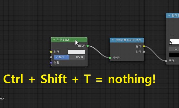 그리고 이렇게 만들어 놓은 셰이더 노드에서는 제대로 작동을 하지 못하고, 일단 위 스크린샷에서 볼 수 있는 것처럼, 일단 node wrangler가 제대로 작동하지 않는 것을 확인할 수 있었습니다.