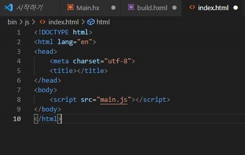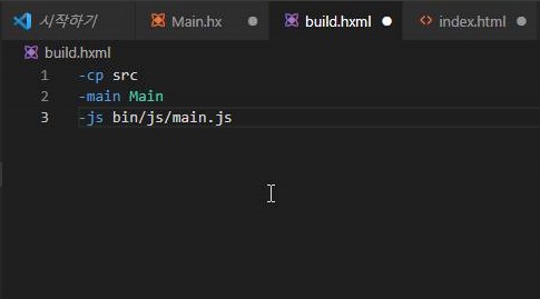 그리고 나서 다음으로 진행한 것이 build.hxml이라고 해서 html이 아니라 hxml이라는 확장자를 사용하고 있다는 점에 유의해야 합니다.