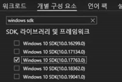 위 스크린샷에서 해당하는 윈도우 SDK를 선택해 주도록 합니다. 이런 선택이 크게 의미가 있는지 없는지는 모르겠습니다만, 일단 아직 모르는 것이 많으니, 그대로 따라가 주도록 합니다.