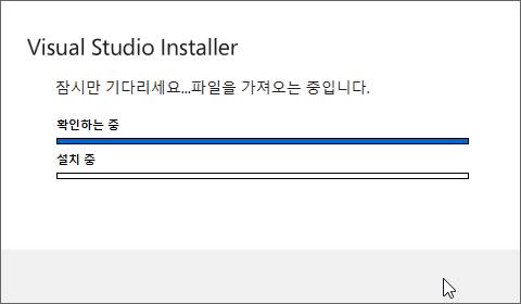 그리고 나서 다음으로 작업을 진행하기 위해서, 일단은 제대로 visual studio를 설치해 주도록 합니다. 이것도 시간이 걸리기는 많이 걸렸습니다.