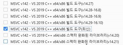먼저 이 작업을 하기 위해서, 일단 위 스크린샷에서 보이는 것처럼 MSVCv142를 해서 빌드 도구를 가지고 오도록 합니다. 그리고 나서.......