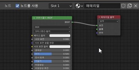 먼저 새로운 매터리얼을 지정해 주는 것으로 일단, 위 스크린샷과 같은 노드가 생성이 될 수 있도록 만들어 주도록 합니다. 이렇게 해서 다음으로 가면............