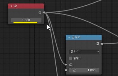 위 스크린샷에서 볼 수 있듯이 value - 값 노드에 원래 입력되어 있던 숫자인 0.5를 지우고 1을 채워 넣도록 해 주는 것 입니다.
