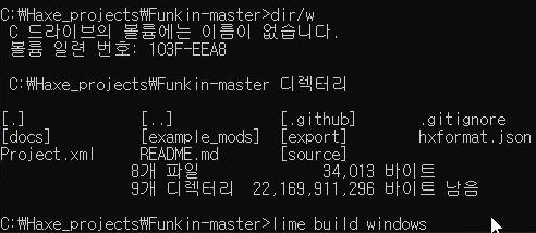 그래서 일단 처음에 lime test windows를 통해서 제대로 작동하는지 안하는지를 우선 fnf원본 에다가 시험을 해 보는 것으로 시작을 했습니다.