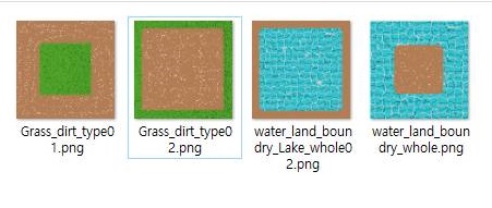이렇게 해서 마지막으로 타일맵을 4종류 만들어 내는데 성공했습니다. 물론 이게 최선은 아니겠지만, 그래도 지금 당장 만들어서 쓸 수 있는 최선이기는 합니다. 이제 다음 포스팅부터 Sprytile이라고 되어 있는 타일맵을 만들어 줄 수 있는 블렌더의 애드온을 어떻게 선보이고자 합니다.
