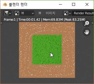 그래서 하는 수 없이 위 스크린샷에서 볼 수 있는 것처럼, 가운데가 비어 있는 상황에서 잔디가 나오도록 만들어야 제대로 된 잔디가 제 의도대로 나와 줍니다.