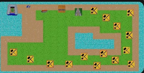 일단 월드맵의 대락적인 모습 - 스테이지 5까지 표시가 되고, 그리고 나서 아직 완성이 되지 않은 스테이지는 위 스크린샷에서 보이는 것처럼 일단 공사표시를 해 주도록 했습니다.