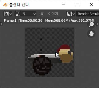이렇게 해서 스테이지 2부터 주인공인 윳쿠리를 괴롭히게 될 모히칸 캐논이 완성이 되었습니다. 다만 이런다고 완성이 아니라 렌더링을 일단 해 보아야 합니다.