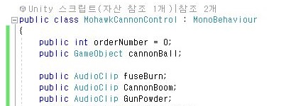 우선 모히칸 캐논을 제대로 컨트롤 하기 위해서는 새로운 C# 스크립트가 필요해서 하나 생성해 보도록 했습니다. 이제 여기서 부터 스파게티 코드와 싸움이 시작입니다.