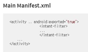 일단 제대로 빌드까지는 되기는 되었는데, 한번 찾아보니, 저 android : exported를 true로 만들어 주기만 하면 되는 줄 알았습니다.