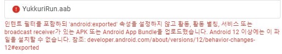 다만 문제가 있는데, 이 문제 - 원래 있었던 구글 플레이에 aab파일이 업로드 되지 않는 문제에 대해서는 아직도 해결이 되지 않은 상황입니다. 원래 붙었던 혹은 아직도 처리가 되지 않았기 때문에 이걸 처리하기 위한 여정을 또 가야하기는 합니다.