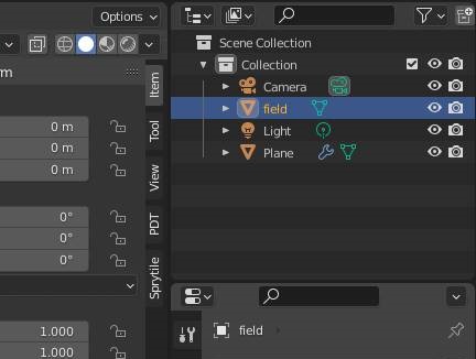 그리고 나서 이번에는 필드라고 해서 새로운 평면을 하나 추가해 주도록 합니다. 이름과는 다르게 지난번의 대포 도화선을 만들 때 처럼 파티클의 모양을 결정하기 위한 오브젝트 입니다.