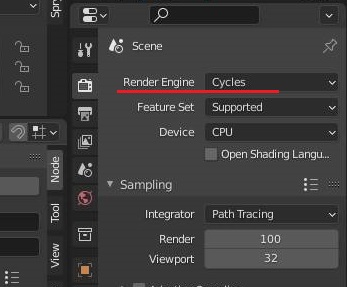 먼저 해야 할 일은 제대로 된 불꽃색을 내기 위해서는 일단, 렌더 엔진을 기존의 엔진에서 cycles엔진으로 바꾸어 주어야 할 필요성이 있습니다.
