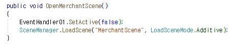 그리고 나서 이번에는 상점씬에서 이 유료재화 구매씬으로 그냥 넘어가지 말고, 하나 더 띄우는 것처럼 하고자 해서, 위 스크린샷에서 볼 수 있는 것철머 LoadScene에서 loading mode를 additive라고 말해버리고 맙니다.