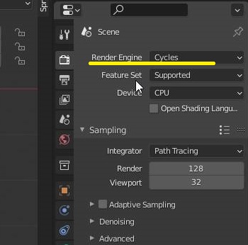 그래도 무언가 그림자가 마음에 들지 않아서 렌더 엔진을 기존의 Eevee에서 위 스크린샷에서 볼 수 있는 것과 같이 일단 cycles로 바꾸어 보도록 했습니다.