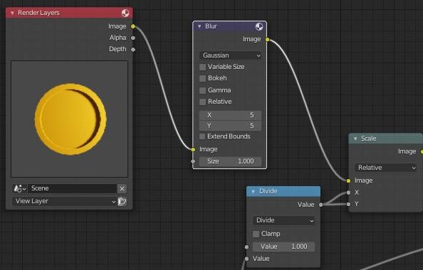 그리고 원래는 스케일 노드로 바로 직항하는 길목에, blur이르는 노드를 주고서, X와 Y값을 변형하는 것으로 모호하게 번지는 효과를 줄 수 있습니다.