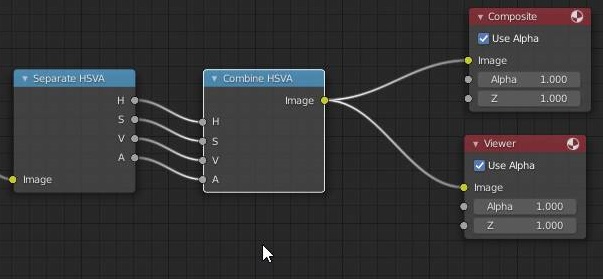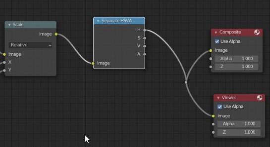 먼저 마지막 스케일 노드가 지나가고 나가는 길에다가 Separate HSVA라는 노드를 추가해서 주도록 합니다. 그리고 나서 결과를 한번 보면.....