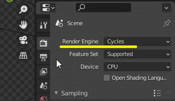 그리고 나서 렌더링 엔진을 Cycle로 바꾸어 주도록 합니다. 지금까지는 Eevee에서 일어났는데, 이것만 가지고서는 한계가 온 모양입니다.