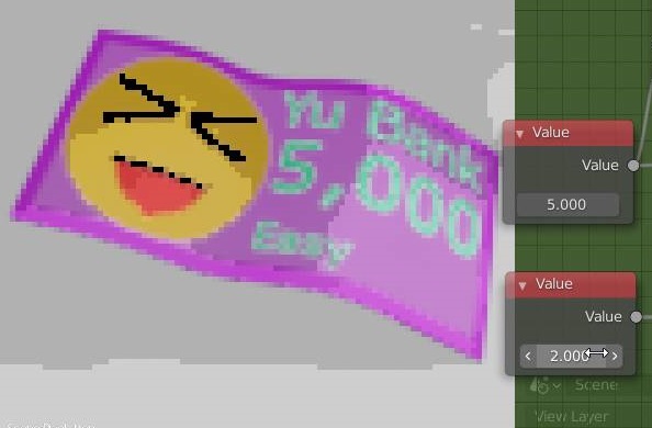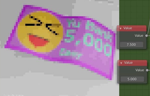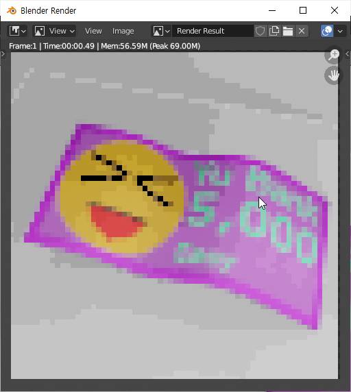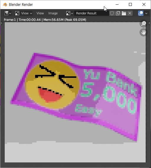 일단 추가적으로 UV 맵을 조정하는 과정이 필요하리라 생각을 했는데, 그렇게 되지 않고, 어떻게 해서 지폐가 제 의도대로 정확하게 나오기는 나왔습니다.