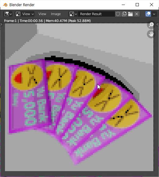 그래서 역시나 compositing에서 있는 노드에서, 위 스크린샷에서 보이는 것처럼, 일단 값이 나오기는 나왔습니다만, 이를 가지고서 이제, 더 픽셀아트처럼 보이면서, 형태는 알아볼 수 있고, 색상을 조정해야 합니다.