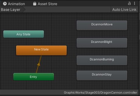 다음으로는 드레곤 캐논의 상태에 따라서 애니메이션을 만들어 주어야 하는데, 이렇게 하나씩 만들어 주기는 주었습니다만, 이것만 가지고는 완전히 작동을 하지 않는 다는 것은 아실 것 입니다. 그래서 이번 포스팅에서는 여기까지만 올리지만, 다음 포스팅에서는 저 애니메이션들이 작동할 수 있도록 코드를 짜 보도록 하겠습니다.