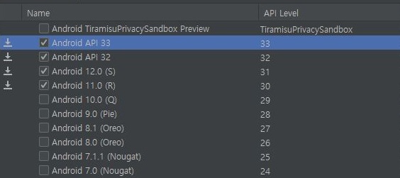 일단 안드로이드 스튜디오를 통해서 api를 설치해 보도록 합니다. 이렇게 해서 도움이 될지 안될지는 모르지만, 일단 시도까지는 해 봅니다.