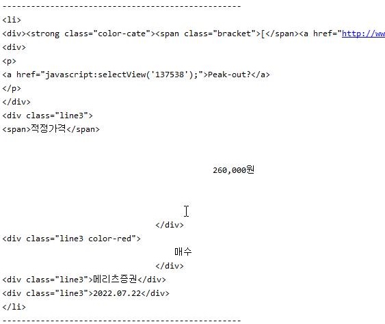 제일 마지막에 있는 내용은 전혀 데이터로 사용할 수 없는 내용이라는 것을 확인할 수 있었습니다. 이제 관련된 데이터를 모으는 데 성공했으니, 어떻게 데이터만 가지고 올 수 있는지에 대해서 한번 이야기를 해 보아야 하는데, 여기서 한 타이밍 웹 크롤링 실습이 끊어졌습니다.