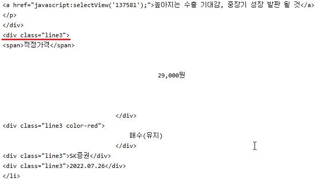 그렇게 해서 일단 타이틀과 종목명을 따로 따로 가지고 오는데 성공할 수 있었습니다. 이제 다음 단계로 가서, 적정가격과 이에 대해서 알아봐야 합니다.
