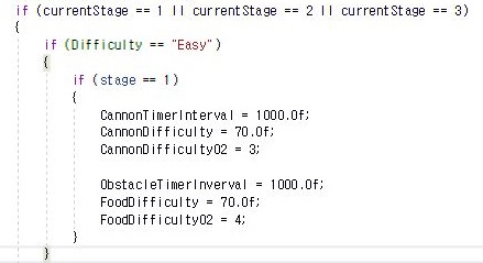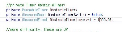 가장 먼저 해야 되는 일이라고 하면, 일단 대포와 장애물은 몇 초 간격으로 나오는 것인지 이미 제가 타이머를 광역 변수로 지정을 해서 간단하게 변경을 시킬 수 있었습니다.
