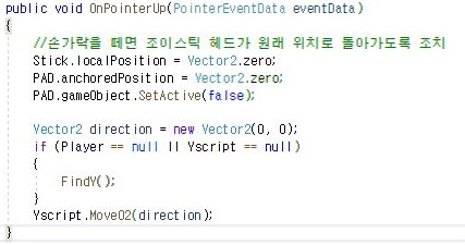 그리고 나서 다음으로 무슨 문제가 발생했냐 하면, 예기지 않게 Action JoyStick을 사용한 경우에는 어째서 인지 한번 방향을 입력하면 계속 그 방향으로 플레이어가 움직이는 오류가 나왔습니다.