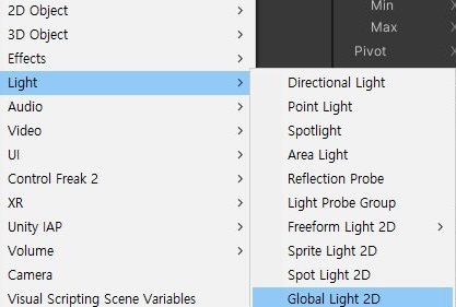 바로 계층뷰에서 global light 2D를 포함시켜 주는 것인데, 이게 없으면 당연하게도 당연히 조명이 없기 때문에 아무것도 보이지 않는 상황이 됩니다.